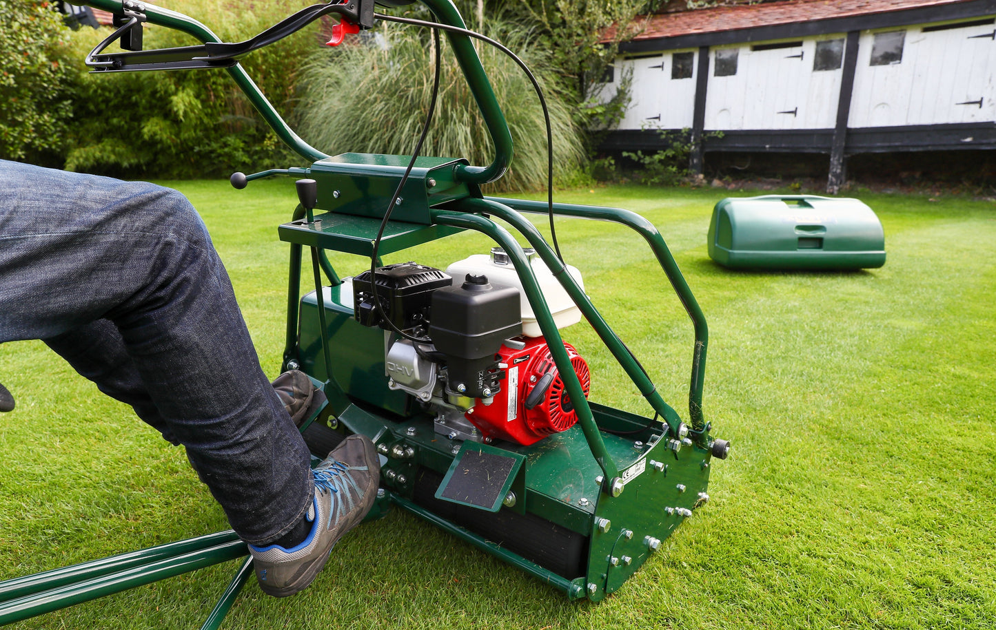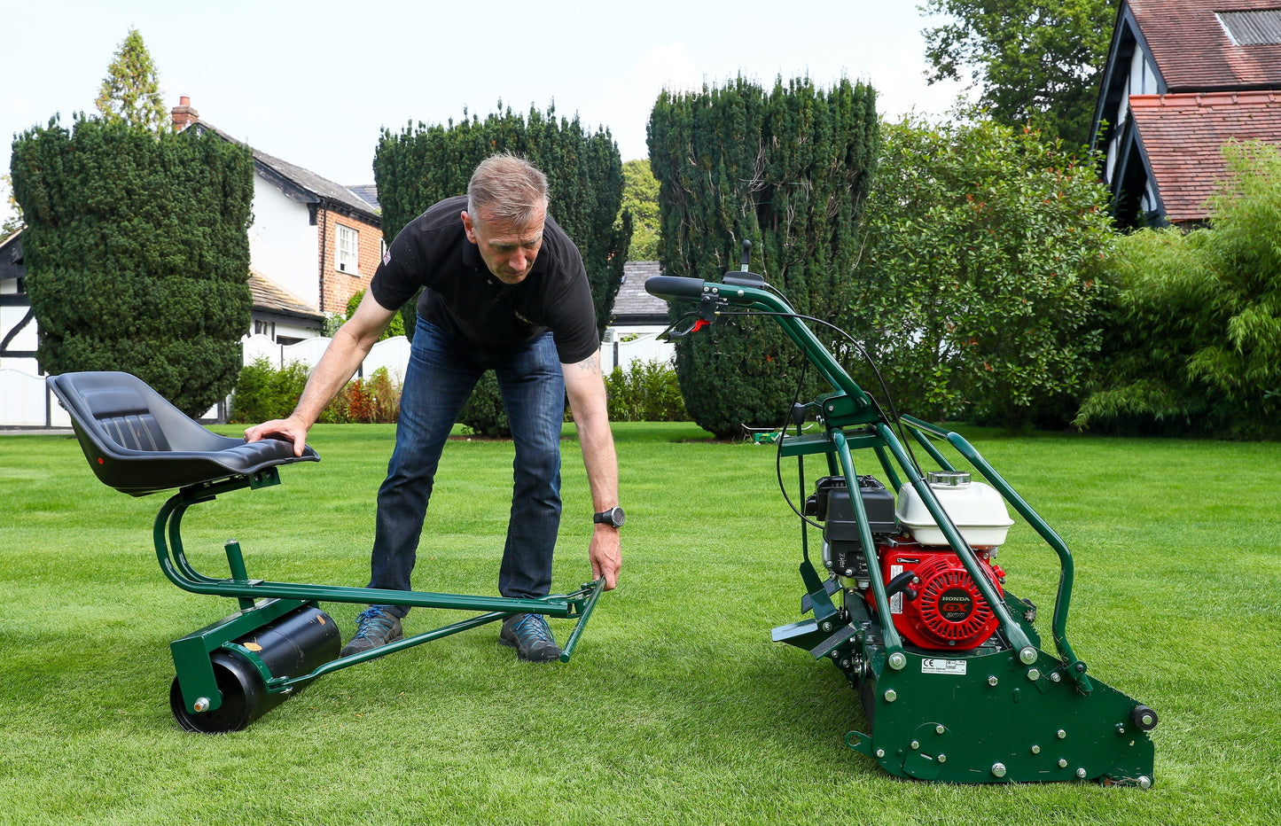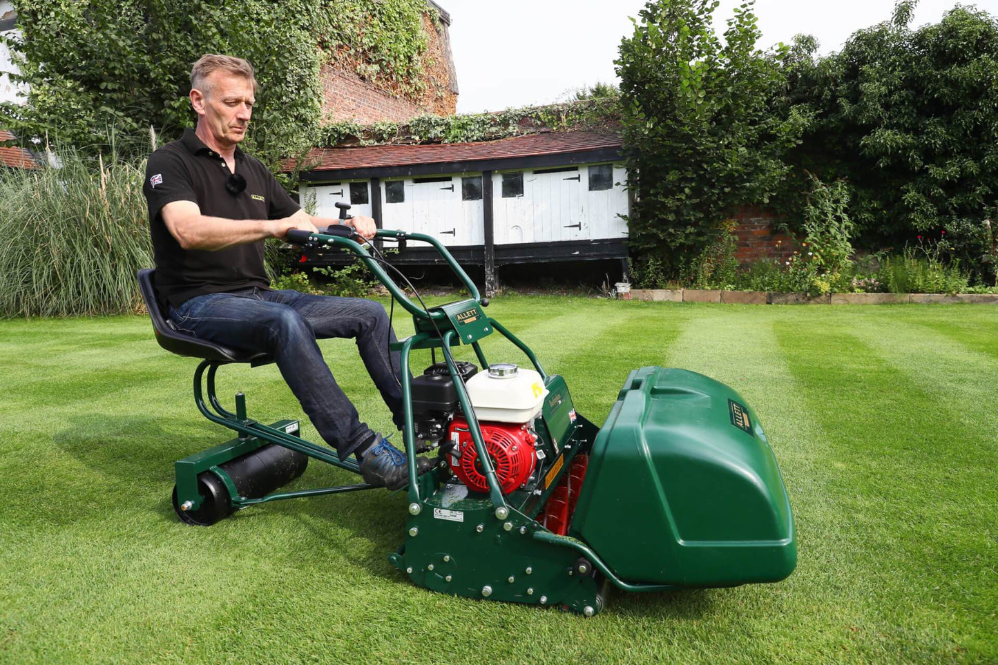 An in-built steering system ensures that the seat always follows the line of the mower when turning around lawn obstructions. The Buckingham 30H mower can be quite quick at full speed so some users may find it easier using a trailing seat.
