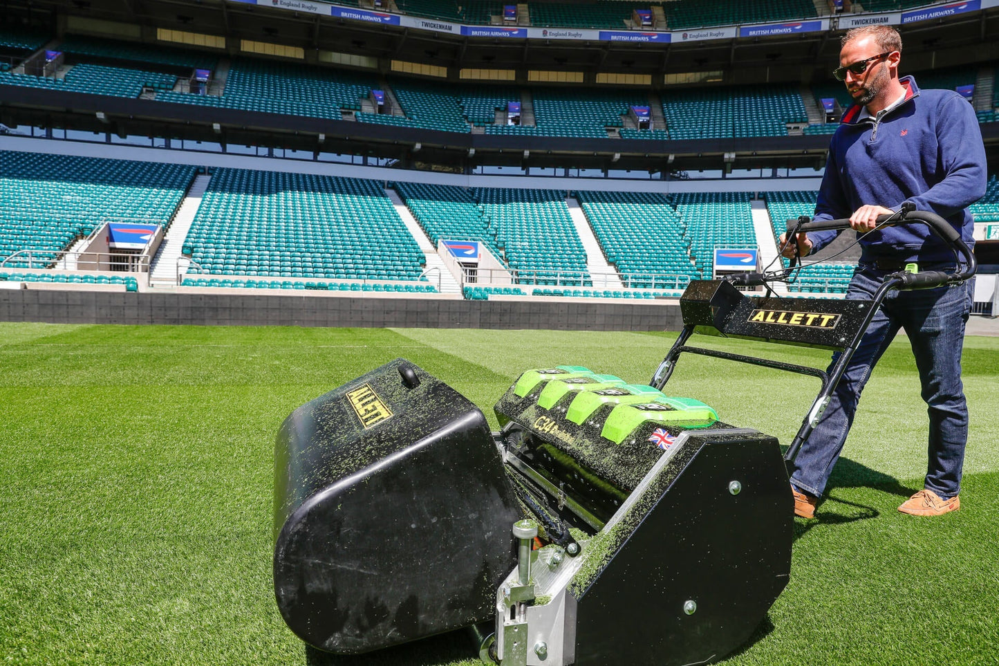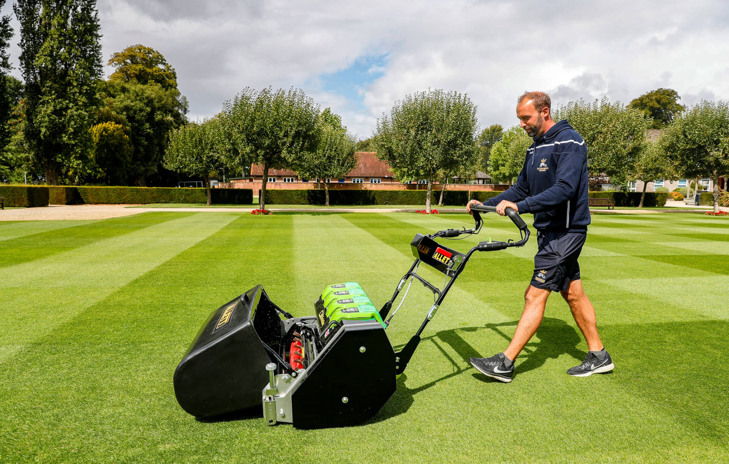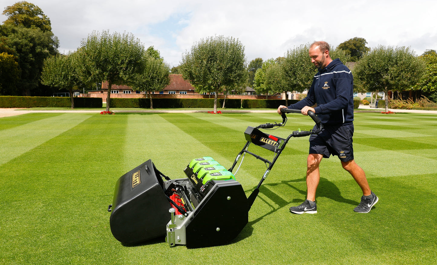 Allett powers into the new age of electric mowers with the C34 Evolution, the large area, walk-behind cylinder mower. The latest Lithium-Ion system battery technology drives the future of mowing systems for sports stadiums, training grounds and luxury lawns, without compromise and with all the attributes of the Allett heritage.