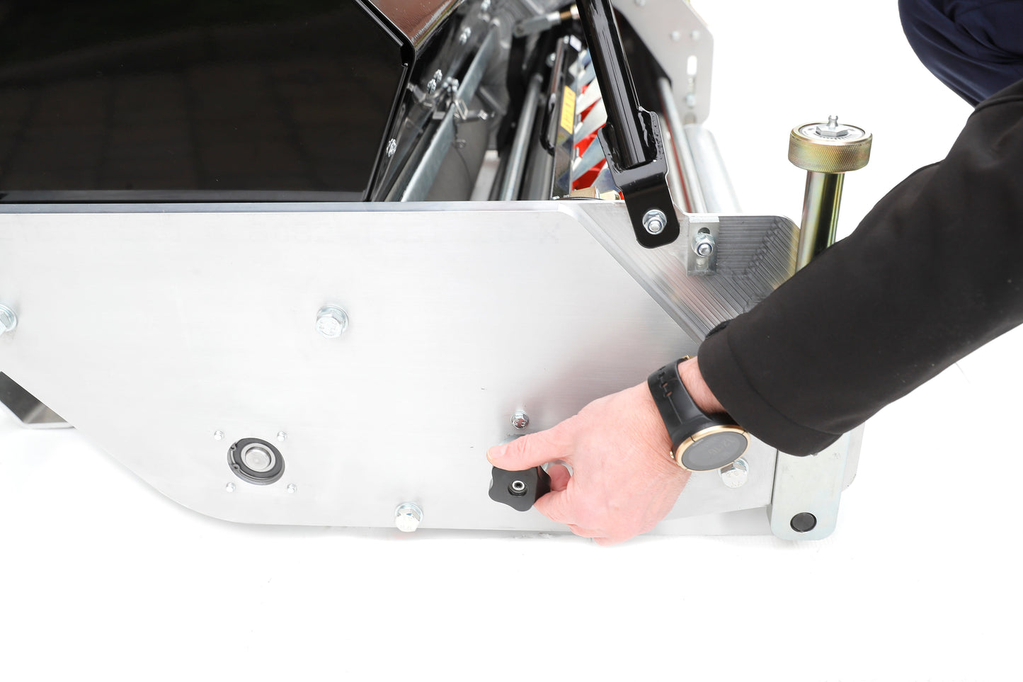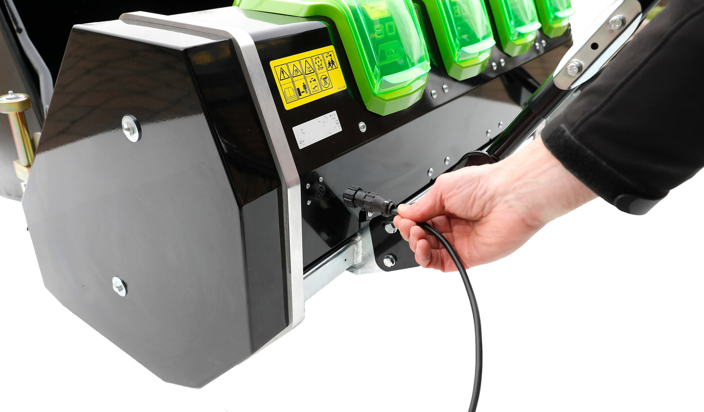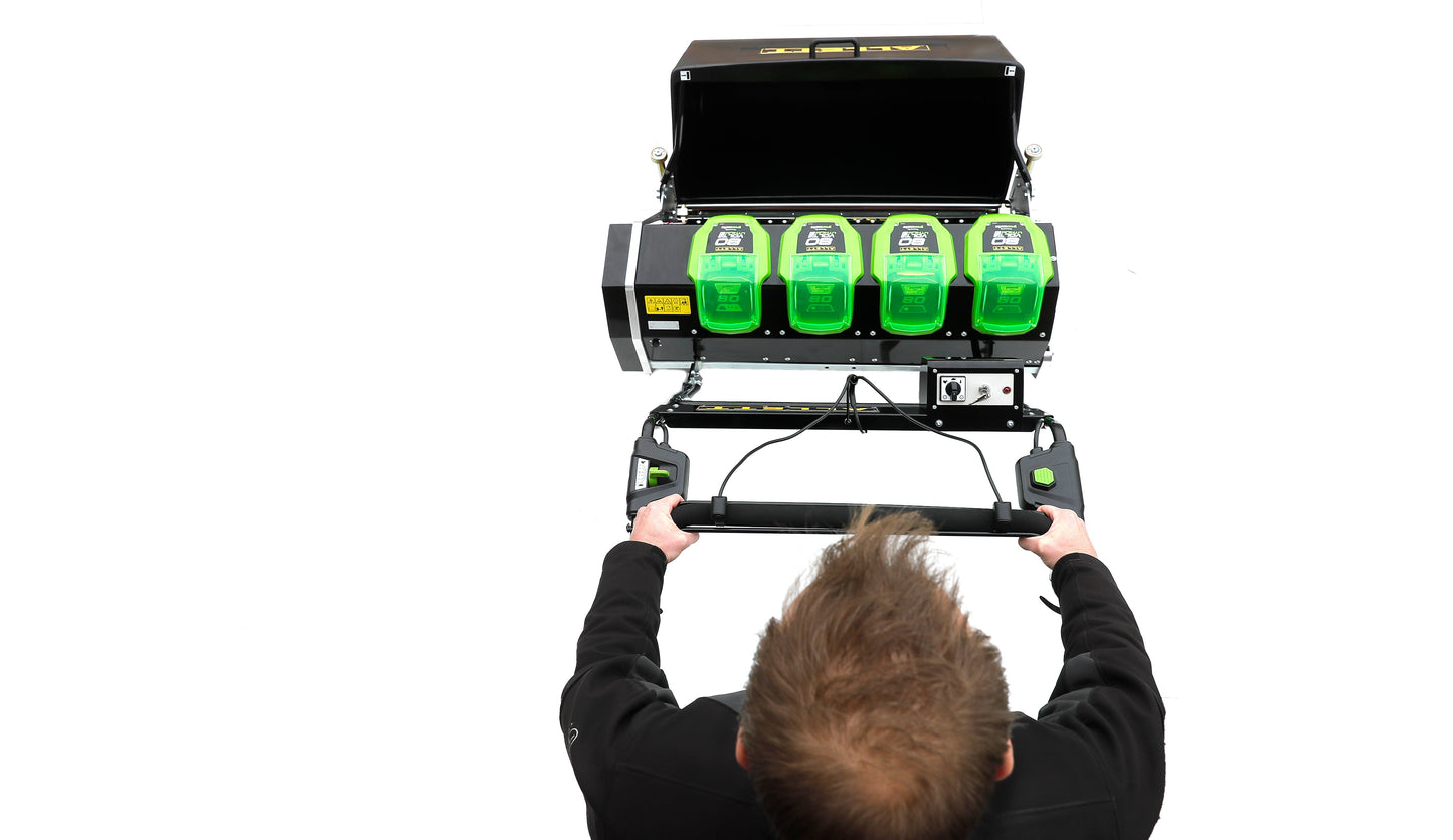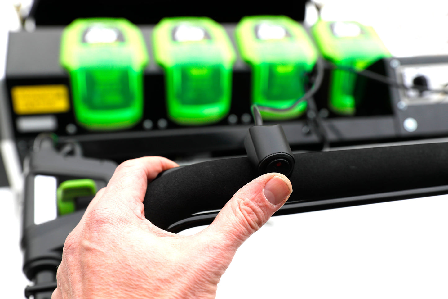 The system has the power to run a series of interchangeable cartridges to scarify, rake, aerate, brush and verti-cut as well as mow with strong striping and an impeccable cut. Quiet operation, no petrol requirement, less than one hour to recharge batteries and much reduced HAV’s (Hand Arm Vibration) add up to a more environmentally sensitive product with no emissions. These are all benefits which will be particularly recognised in enclosed stadiums. The 82V (6Ah) system is powerful enough to deliver the performance required, even for such a large mower, and drive the cartridges for year-round professional multiple task turf maintenance.