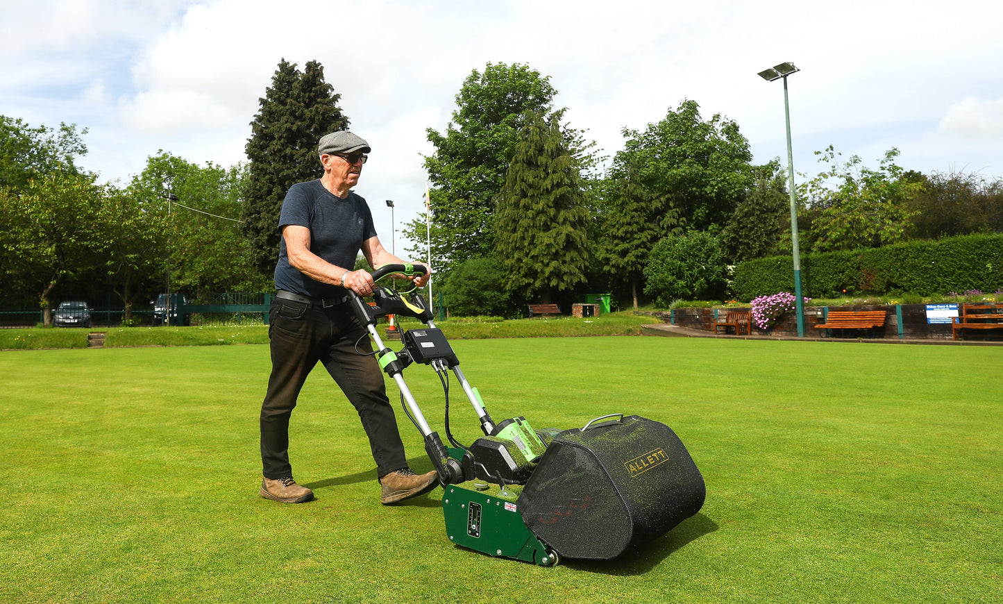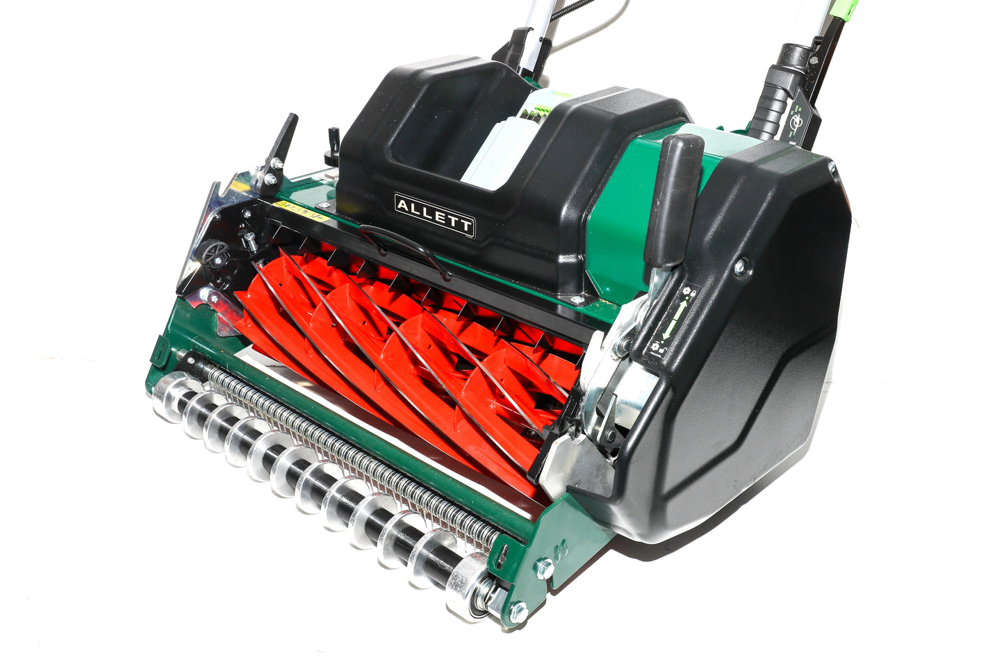 Features expected from Allett’s Kensington range are standard like the adjustable, spring-tine lawn rake behind the steel front roller, front wheel kit and a split rear roller with differential drive for assistance in straight-lining and reduced turf-scuffage when turning.