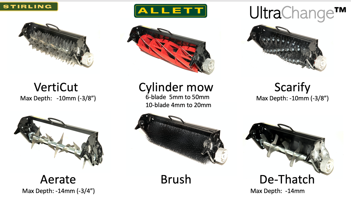 Allett’s quickest cartridge change ever means that removing the mower cartridge and securing the other cartridges takes just seconds, and no tools are required with the patent-applied for system (UltraChange™)