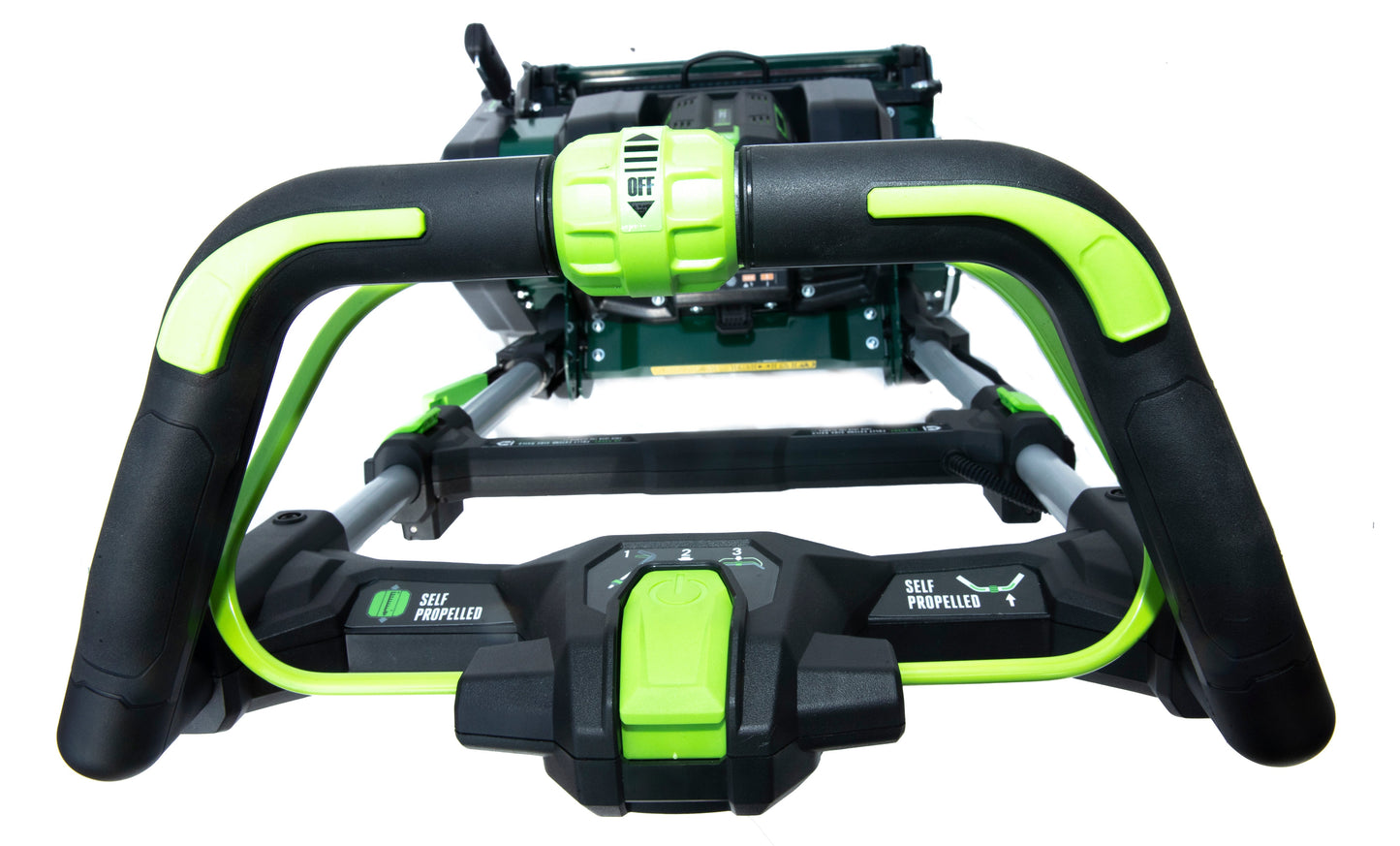 Powered by the EGO 56V battery system using their unique 'Keep Cool'™ Technology, the mowing and cultivation cartridges are driven by a separate powerful electric motor(ProDrive™) and the rear roller drive speed is controlled by the handlebar mounted speed control which can be adjusted on-the-move so the correct forward speed is selectable to achieve the best results.