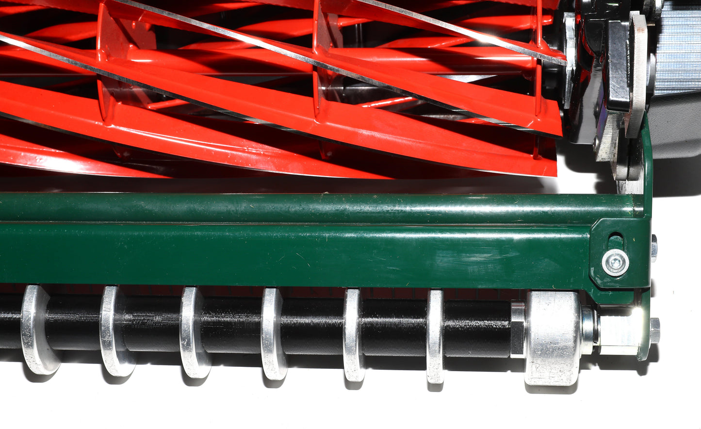 The 6-bladed mowing cartridge comes as standard. There is an optional 10-bladed cylinder with a thinner front-edged blade for where a close shave is desired for example golf and bowling greens.