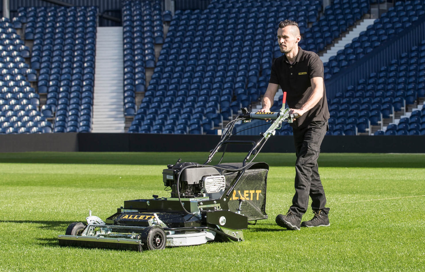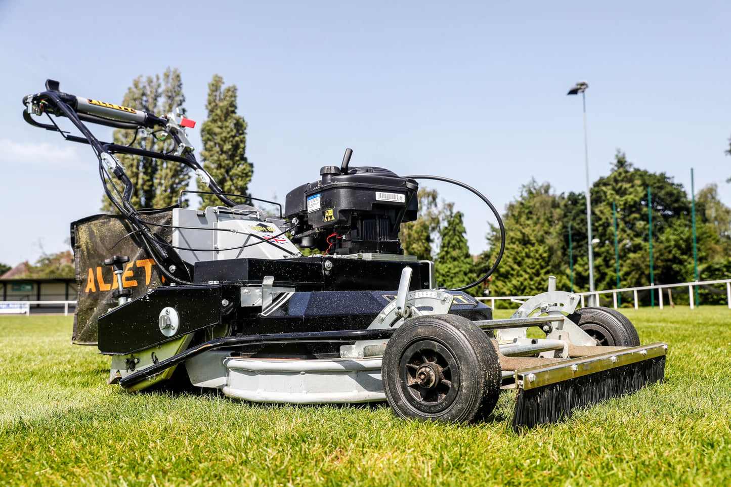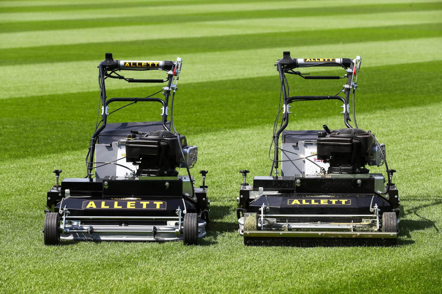 The Allett Uplift 86 is built on the experience gained with previous models, and the feedback of groundsmen, to create an 86cm/34” solid and dependable stadium rotary mower. Twin contra-rotating blades produce a high lift cut and vacuum for increased efficiency while a full-width rear roller produces the most perfect stripes.