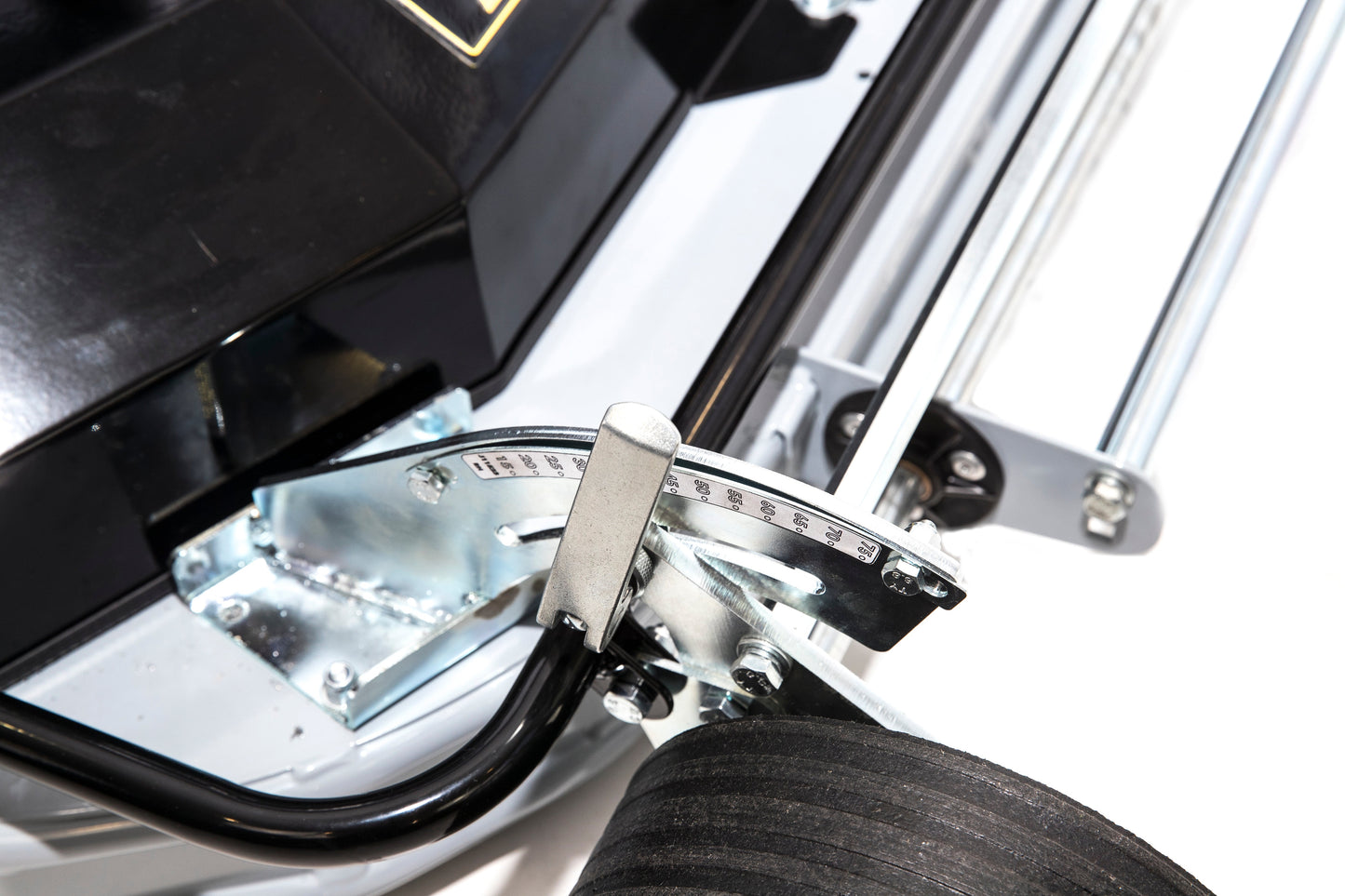Reliability and durability are inbuilt in the Uplift 86 with chain self-tensioning, bearing protection and solid front tyres running on bronze bushes. The cutting height is completely variable from 1.5cm to 7.5cm (0.59in – 2.3in) with a steel fabricated cutter deck and three-piece, full width, steel roller making this a tough, robust and versatile mower.